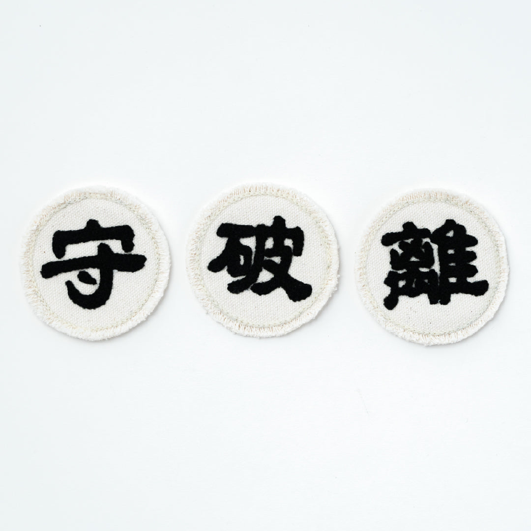 守破離の3文字を1文字ずつデザインしたチェーンステッチパッチです。